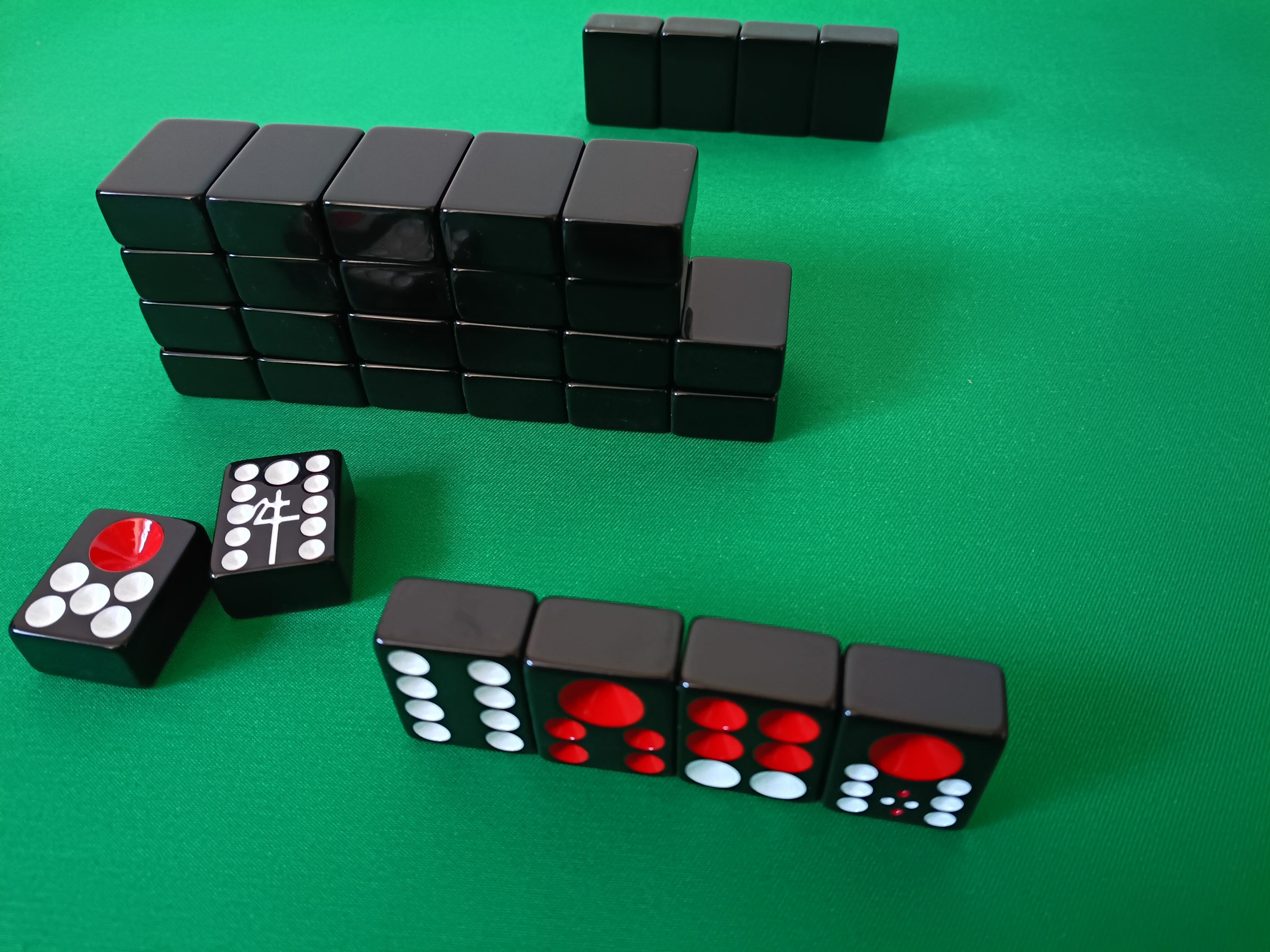 麻雀牌に近い寸法で遊びやすく、柄も見やすく重さもズッシリとした重厚感あり高級感漂う天九牌です。